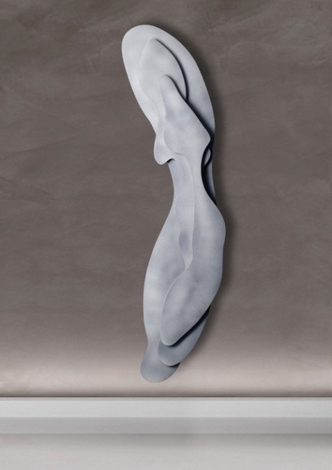 Een geometrische wand sculptuur met geborsteld roestvaststaal afwerking, een ware kunstwerk aan de wand.