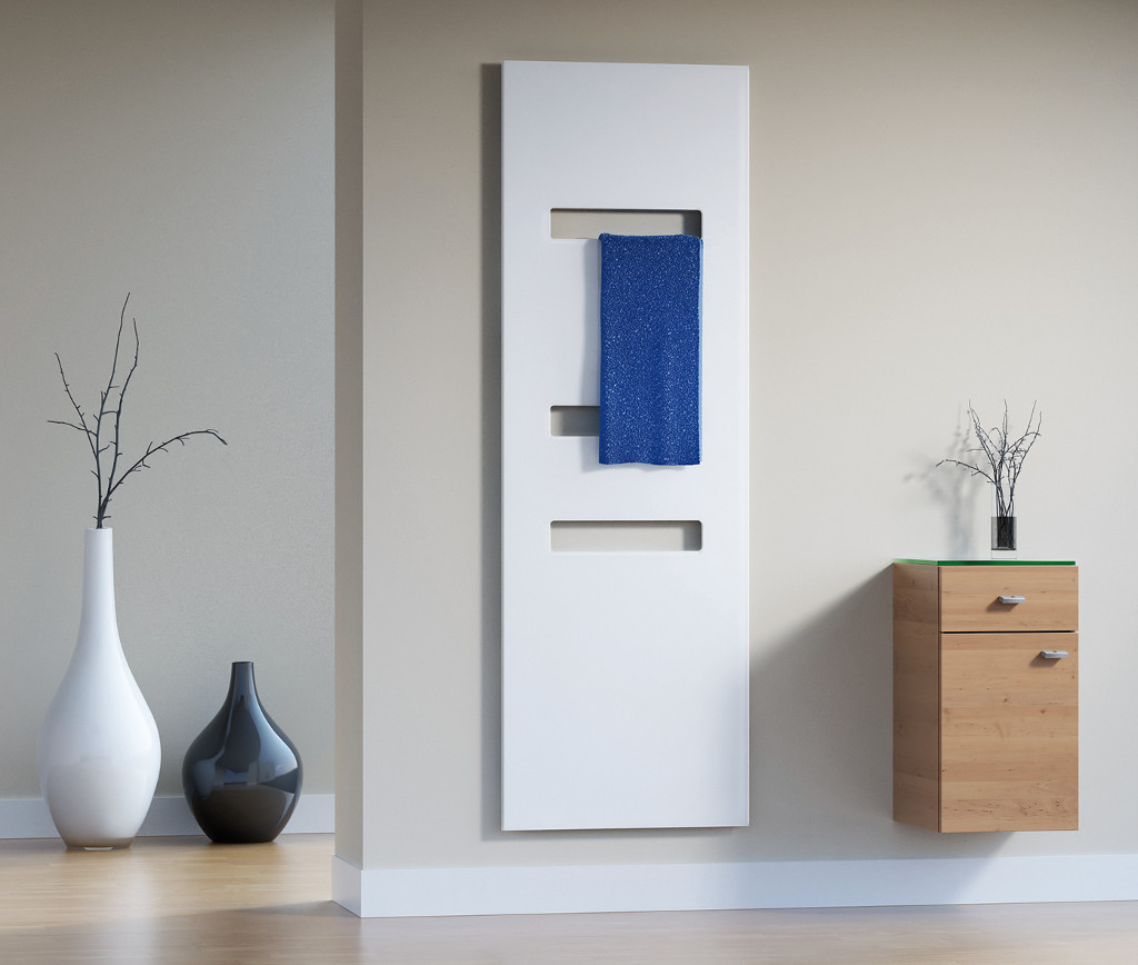 Zweeft vlak tegen de wand en is met de moderne vormgeving een echt design highlight: de nieuwe Atelier Highline designradiator. Het schitterende glasfront (62 x 180 cm) is voorzien van drie licht afgeronde uitsparingen voor he tophangen van handdoeken. Dankzij de flexibele aansluiting is deze ook geschikt voor Electro gebruik, zoals b.v. met het nieuwe HSK-verwarmingselement 3 led.