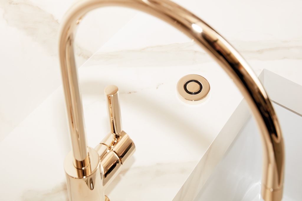 Door het gebruik van materialen die op elkaar zijn afgestemd, ontstaat een onvergankelijke, elegante uitstraling. Donkere houten lambrisering, wit marmer en mondaine lampen herinneren aan het begin van de 20e eeuw – en vormen zo een eerbetoon aan art deco en jugendstil. Kunstzinnig bewerkte glazen fronten of gouden barkrukken overtuigen bovendien als historische designaccenten, zonder ooit ouderwets te ogen. Ook de kranen van Dornbracht dragen bij aan de interpretatie van de vintage-stijl voor het heden.