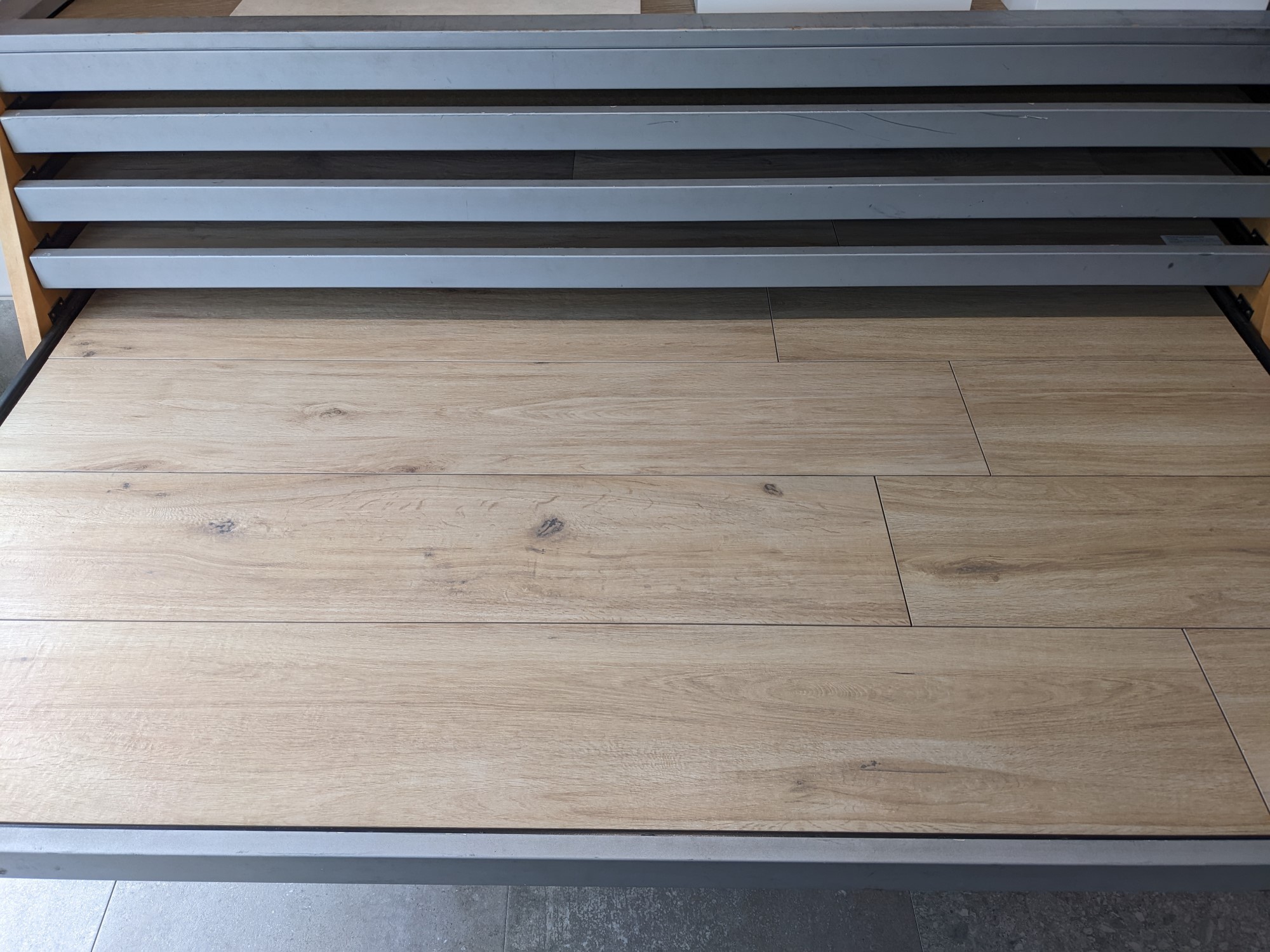 De Kronos Les Bois Slavonia 10x60 is een houtlook vloertegel in een smal formaat. Door dit formaat is de tegel uitermate geschikt voor een visgraatpatroon, ook in kleine ruimtes. Dit kleine formaat keramisch parket kan daardoor ook prima in op de vloer in een toilet, badkamer of keuken. Maar bijvoorbeeld ook op de wand op de achterwand van de toiletombouw of douchewand. De Slavonia is ook verkrijgbaar in 20x120 voor de woonkamer.