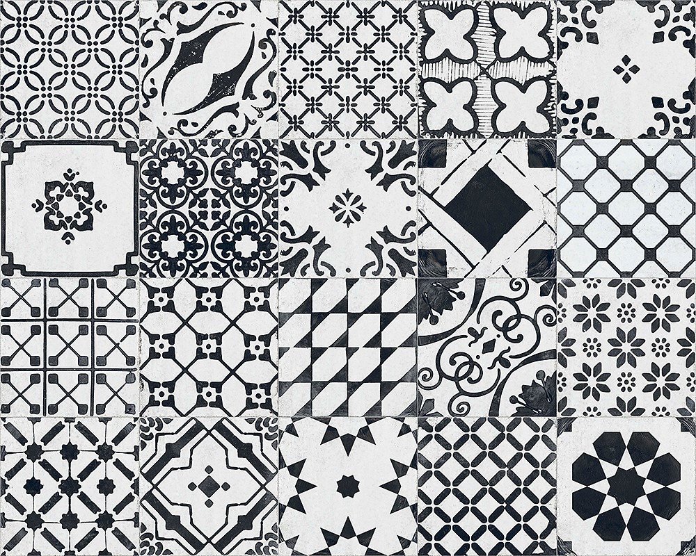 De Xclusive Re_Style Mix_white 20,5x20,5 is een mix van patroontegel vloertegels voor in de badkamer, toilet of keuken. De Xclusive Re_Style Mix_white is een mix van twintig verschillende patronen. De hoofdkleur van de Re_Style Mix_white is wit met daarop zwarte patronen. De maat van de Xclusive Re_Style Mix_white is 20,5 bij 20,5. De anti-slip klasse van de keramische patroontegels is R10 en daardoor goed te gebruiken in de badkamer. Daarnaast kan de Xclusive Re_Style Mix_white natuurlijk ook prima in het toilet of keuken. De Re_Style Mix_white is een vloertegel maar kan natuurlijk ook aan de wand gebruikt worden.