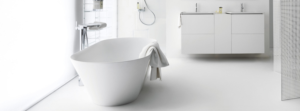 Vervaardigd uit het mineraalmateriaal Sentec combineert dit bad strakke vormen met een zijdezacht oppervlak – een perfecte balans tussen design en comfort, zonder zichtbare naden.