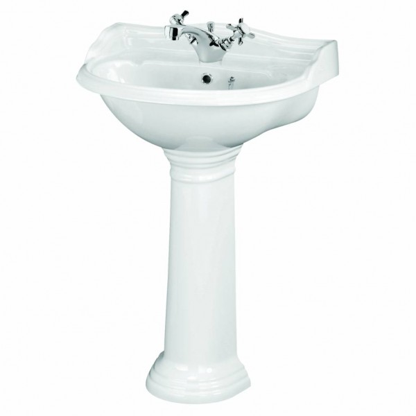 Dit is een klassieke wastafel op zuil. Deze landelijke wastafel is leverbaar met één of drie kraangaten.
