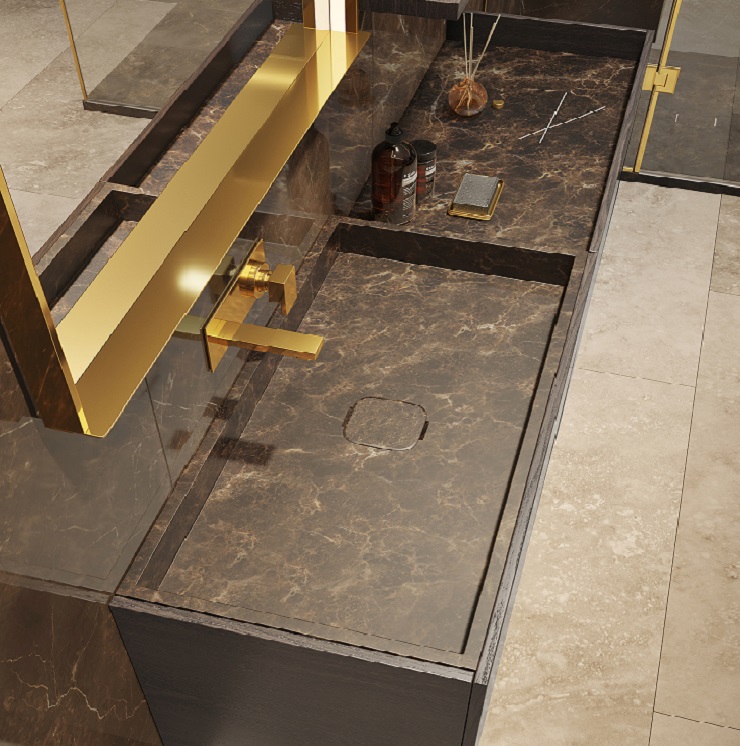 Deze natuurelementen kunnen ook stralen in de badkamer mits de juiste behandeling en onderhoud kan je deze wastafels en douchebakken jaren schoon houden.