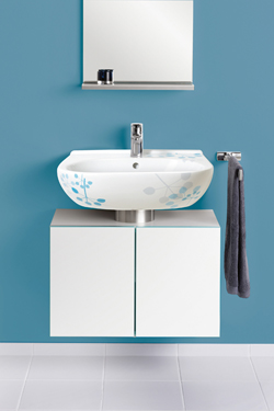 Kleur, frisheid en meer plezier in de badkamer: dat hoeft helemaal niet zoveel moeite te kosten. De innovatieve wastafel van Villeroy & Boch bewijst het op maar liefst drie manieren: met zijn eigentijdse vormgeving, met zijn aantrekkelijke prijs en door de geheel nieuwe combinatiemogelijkheid met de kleurdecors Playground, Pretty Silhouette en Cherry Blossom. De bijpassende meubelen met randen in blauw, oranje en paars – qua kleur perfect afgestemd op de wastafelvarianten – bieden nog meer (speel-)ruimte voor de vormgeving.