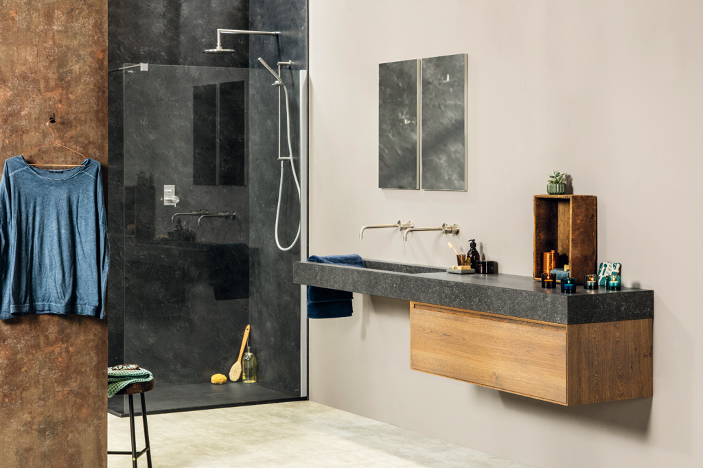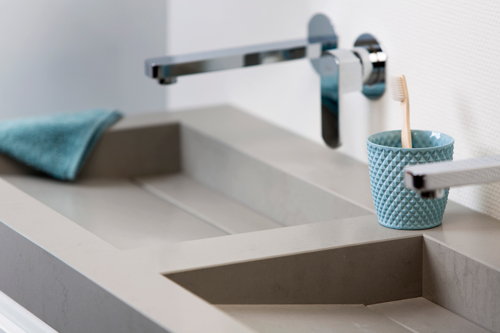 Een maatwerkwastafel sluit volledig aan bij de sfeer van de badkamer. Bovendien is er keus uit verschillende materialen, zoals steen, (compact)laminaat en Corian®. Elk materiaal heeft weer zijn eigen kleurenpalet.