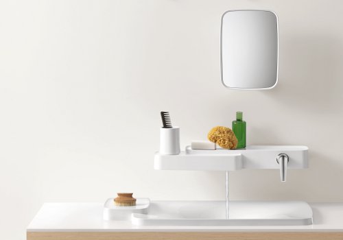 Bij de wastafel bieden de planchetten niet alleen veel plaats voor persoonlijke spullen, tegelijkertijd zijn zij ook de basis voor de keuze uit vele compositiemogelijkheden van kraan en wastafel. De kraanuitlopen en -grepen zijn vrij te plaatsen op de planchetten - en wel precies daar, waar zij in de individuele situatie gebruikt gaan worden: bijvoorbeeld op een plaats die voor kinderen makkelijk bereikbaar is of op een positie die zich uitstekend voor linkshandige gebruikers leent. Of een plek die kenmerkend is voor iemands persoonlijke smaak. In combinatie met de wastafels, die als wand- of inbouwmodel met één of twee geïntegreerde planchetten verkrijgbaar zijn, vermenigvuldigen de vormgeving- en indelingopties zich verder. “Uiteindelijk heeft iedereen de vrijheid om te beslissen welke oplossing voor hem of haar het beste is”, verklaren Ronan en Erwan Bouroullec.