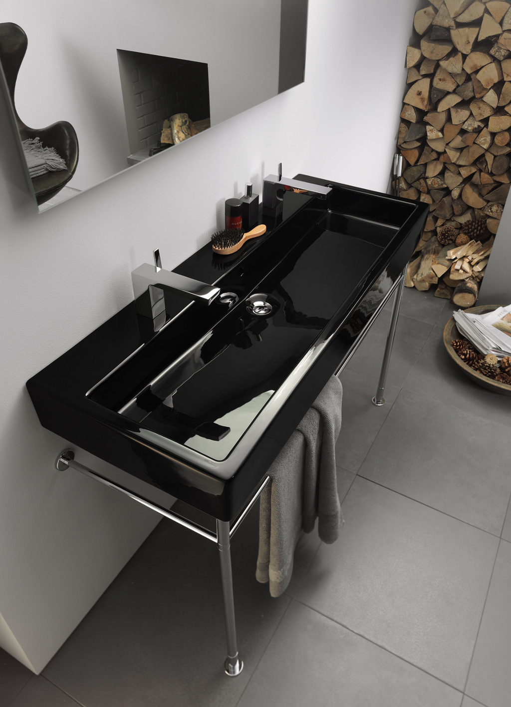 In contrast met het pure wit, steekt Duravit de Vero wastafels, toiletten en bidets in een nieuwe outfit. Dit programma, straalt niet meer alleen in puur wit, maar ook in edel zwart, en zo zijn creatieve en op zichzelf staande combinaties mogelijk. Zwart staat voor exclusiviteit en elegantie. Zwart is echter ook een statement van moed, vastberadenheid en een extravagante stijl. In het badkamerdesign maakt zwart aantrekkelijke contrasten mogelijk. Met rechte lijnen en een tijdloos karakter is Vero als archetype van een heldere vormgeving uitermate geschikt voor kleurenspelen in zwart-wit.
