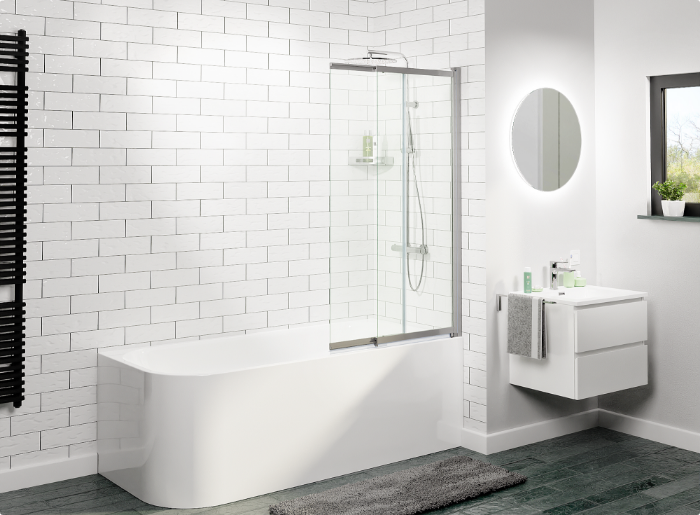Een douchebad is een badkuip waarin je ook kunt douchen. Meestal wordt een badkraan en douchekraan geïnstalleerd, en op de badrand komt een handige badwand die spatwater tegenhoudt. Zo kun je zorgeloos douchen in je bad.