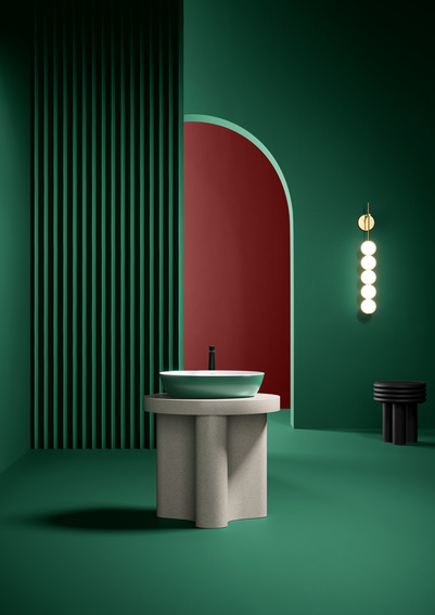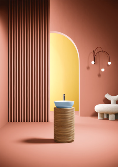De Artis opzetwastafels zijn verkrijgbaar in vier vormen – rond, ovaal, vierkant en rechthoekig – en kunnen gecombineerd worden met meubels uit de Finion, Collaro en Legato collecties. Maak een statement door de gekozen kleur door te trekken in de ruimte door een back-to-wall of vrijstaand ligbad in dezelfde kleur uit te voeren.