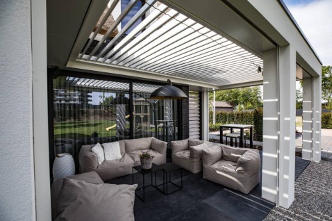 Heerlijk buiten leven met de louvredaken, louvrepanelen en shutterpanelen van Livium.
