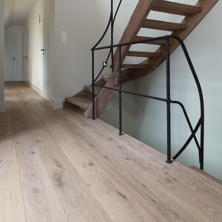 Bent u op zoek naar een houten vloer die helemaal op uw maat gesneden is en afgestemd op uw woonsituatie, op uw technische voorkeuren en uw financiële mogelijkheden? Dan bent u bij NOBEL Flooring in Minderhout aan het goede adres. Breng vrijblijvend een bezoek aan onze huiselijke toonzaal, waar we u een perfect beeld kunnen schetsen van de mogelijkheden. Omdat we het hele proces van stam tot plank in eigen beheer hebben, kunnen we heel ver gaan om te beantwoorden aan uw persoonlijke voorkeur. De vloerplanken kunnen gemaakt worden met vaste of variabele breedtes van 10 tot 28 cm en met een lengte tot 3,5 meter. De standaarddikte bedraagt 16 mm, met een minimum van 10 en een maximum van 24 mm.