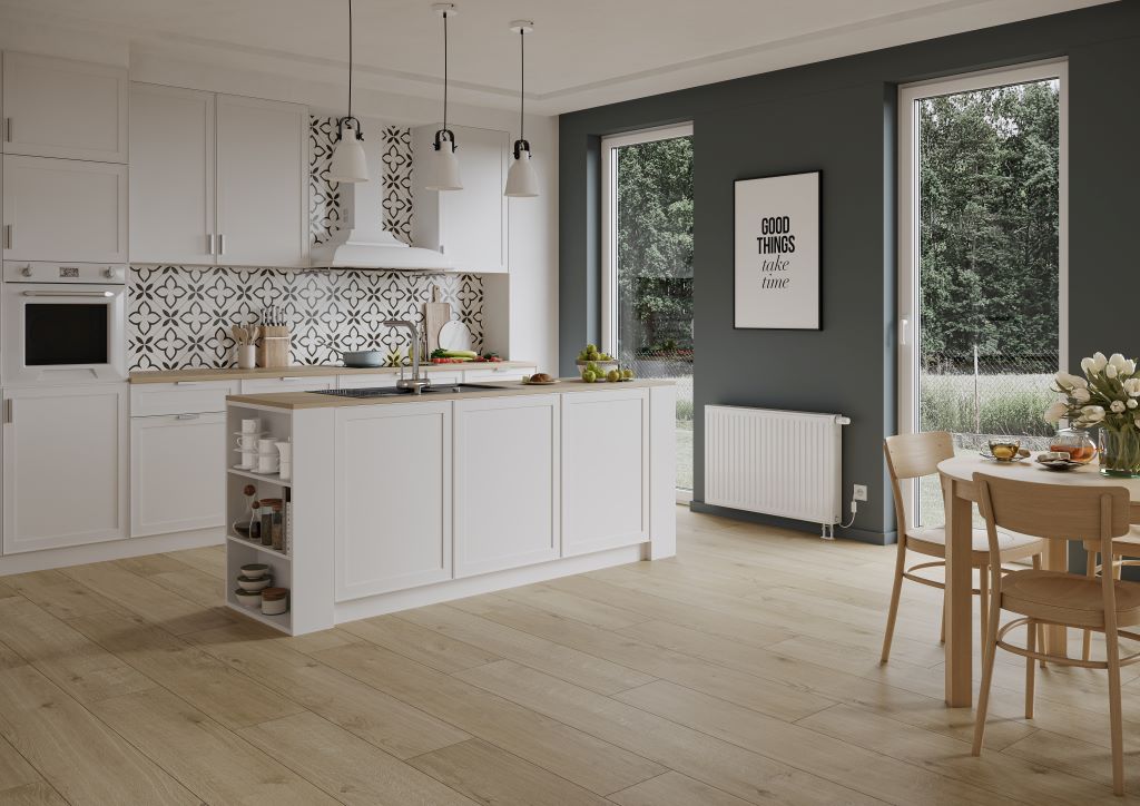 Het uitgebreide productaanbod omvat radiatoren, badkamerradiatoren, vloerverwarming, convectoren, kraanwerk en bedieningen en warmtepompen.