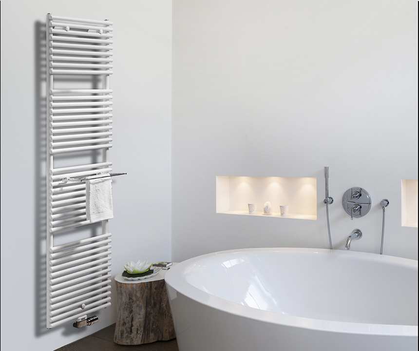 Een slanke en tijdloze badkamerradiator, verkrijgbaar in rechte of gebogen uitvoering. Praktisch en eenvoudig te monteren dankzij de slimme middenaansluiting. Zorgt voor efficiënte warmteafgifte en is beschikbaar in verschillende moderne kleuren. Inclusief een gratis verchroomd, wegklapbaar handdoekrek.