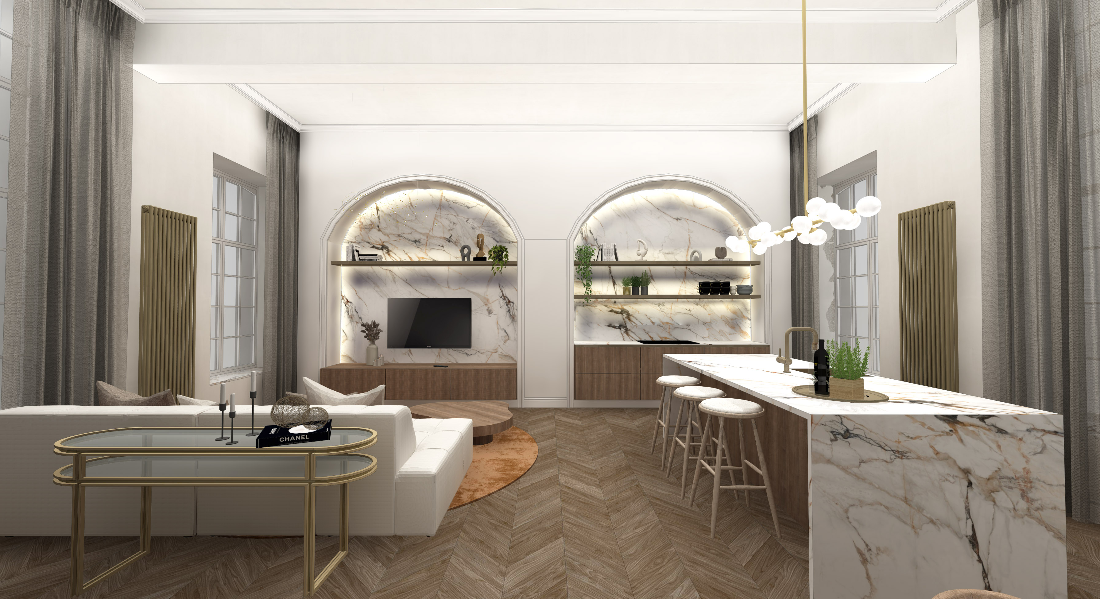 Zoals te zien in het bovenstaande project zorgen ronde vormen niet alleen voor visuele verfrissing, maar biedt dit ook een tal van voordelen. Organisch gebogen bijzettafeltjes, ronde spiegels en bogen in de muur. Ze verzachten de ruimte, maken het gezelliger en bevorderen een gevoel van balans. Bovendien zijn ronde lijnen in het interieur tijdloos, waardoor ze moeiteloos passen bij diverse stijlen en lang relevant blijven.