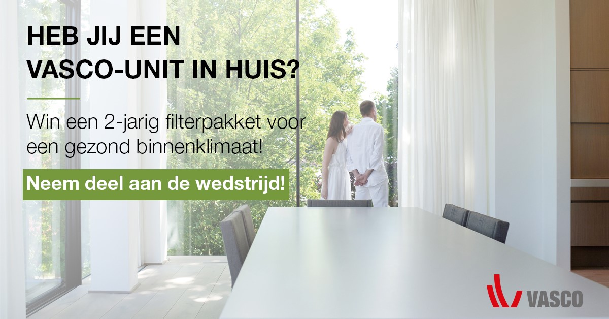 Heb jij onlangs een Vasco-unit geïnstalleerd bij jouw thuis (of in je kantoor)? Doe dan mee aan de winactie!