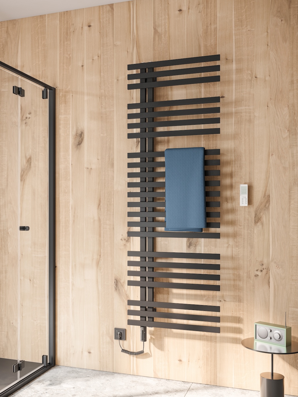 Klanten die houden van een minimalistische, ingetogen stijl van inrichten, vinden in Yenga Light de perfecte match: gebaseerd op het uiterlijk van de populaire Yenga designradiator, presenteert het nieuwe model zich ook op een esthetisch elegante manier en maakt het een modern statement in de badkamer. Met een slanke 35 mm, zijn de platte verwarmingslamellen van Yenga Light slechts half zo breed als die van de Yenga. De open plaatsing van de lamellen met royale tussenruimtes geeft de radiator een zwevende, lichte uitstraling en stelt gebruikers in staat om handdoeken gemakkelijk via de zijkant op te hangen. Yenga Light is standaard verkrijgbaar in tijdloos wit en fijn gestructureerd grafietzwart met afmetingen van 600 x 1.150 mm of 600 x 1.735 mm. Speciale kleuren zijn verkrijgbaar op aanvraag.