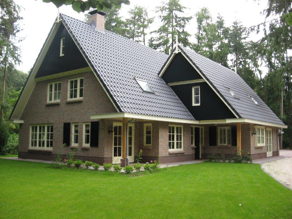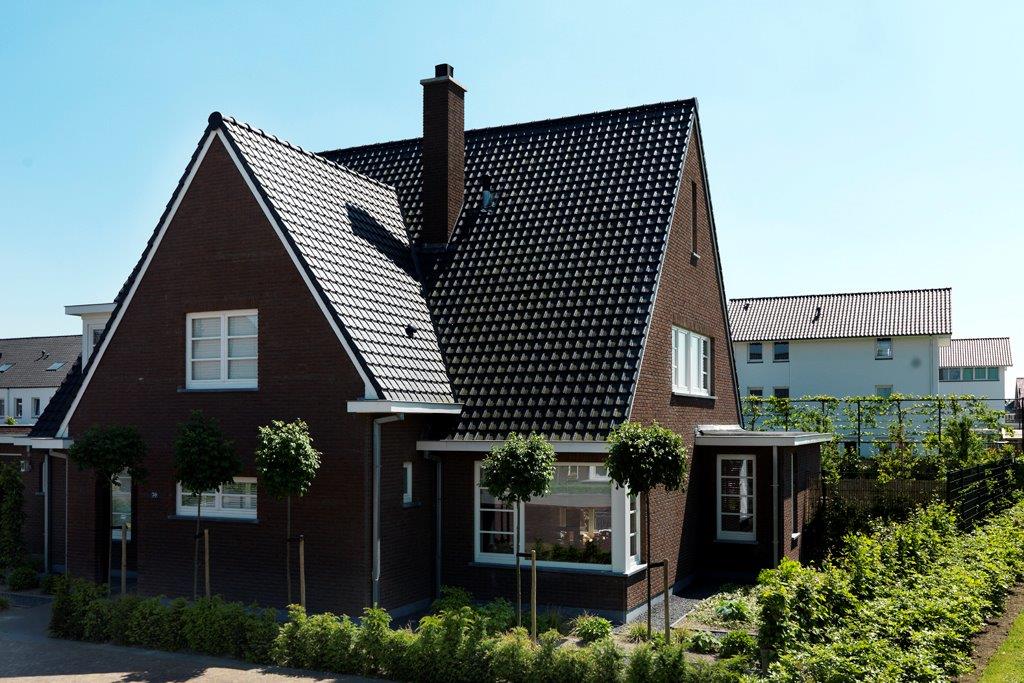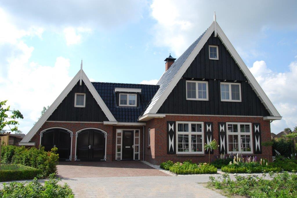 De toegepaste donkerrode gevelsteen in samenspraak met de gepotdekselde gevelnok in donkerkleurige houten gevelelementen in contrast met de fraaie witte dakrandafwerking en de brede dakoverstekken, geeft het geheel toch een fraai authentiek beeld. Vooral ook omdat de donkere geglazuurde dakpannen en de detailleringen van de voordeur en twee garagedeuren volledig in dezelfde stijl en donkere kleur zijn gehouden. Flieroord bouwt inmiddels al meer dan 25 jaar luxe villa's. Zij nemen je alle zorg uit handen. Vanaf het eerste kennismakingsgesprek tot aan de oplevering word je begeleid en geadviseerd door één van de specialisten. (foto boven)