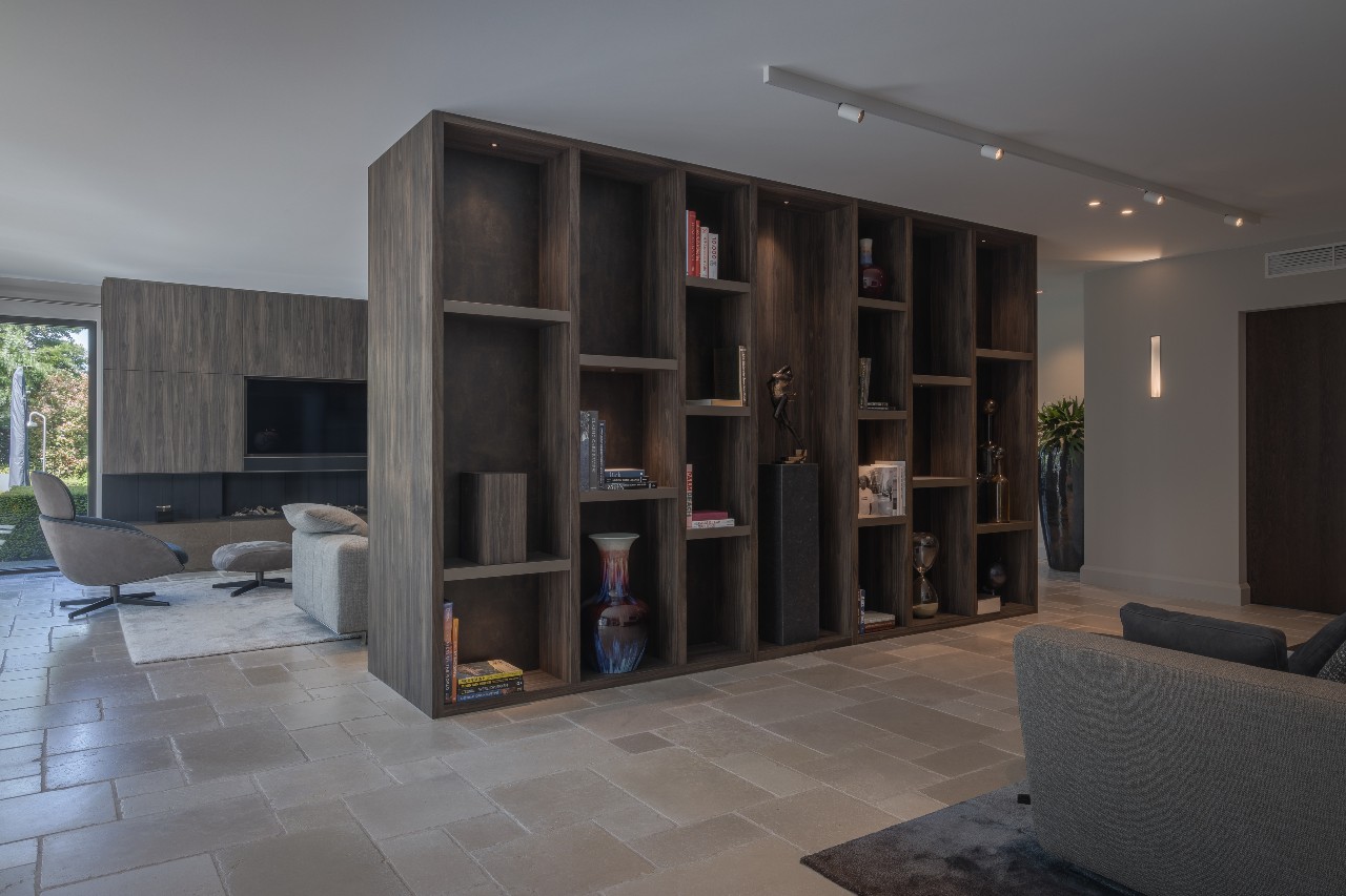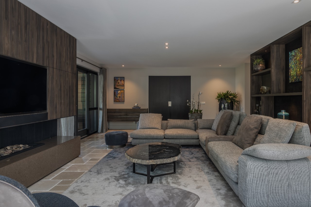 Deze mooie villa heeft een prachtige metamorfose ondergaan. De woning staart luxe uit dankzij de geselecteerde kleuren en materialen. In samenwerking met architect Eric Kant Contemporary Design is deze luxe villa tot stand gekomen. Er is veel gebruik gemaakt van verschillende materialen in warme kleuren. Laat je inspireren door de prachtige roomdivider en haardombouw in de woonkamer. Alleen al in de roomdivider zijn 4 verschillende soorten plaatmateriaal en bewerkingen gebruikt.