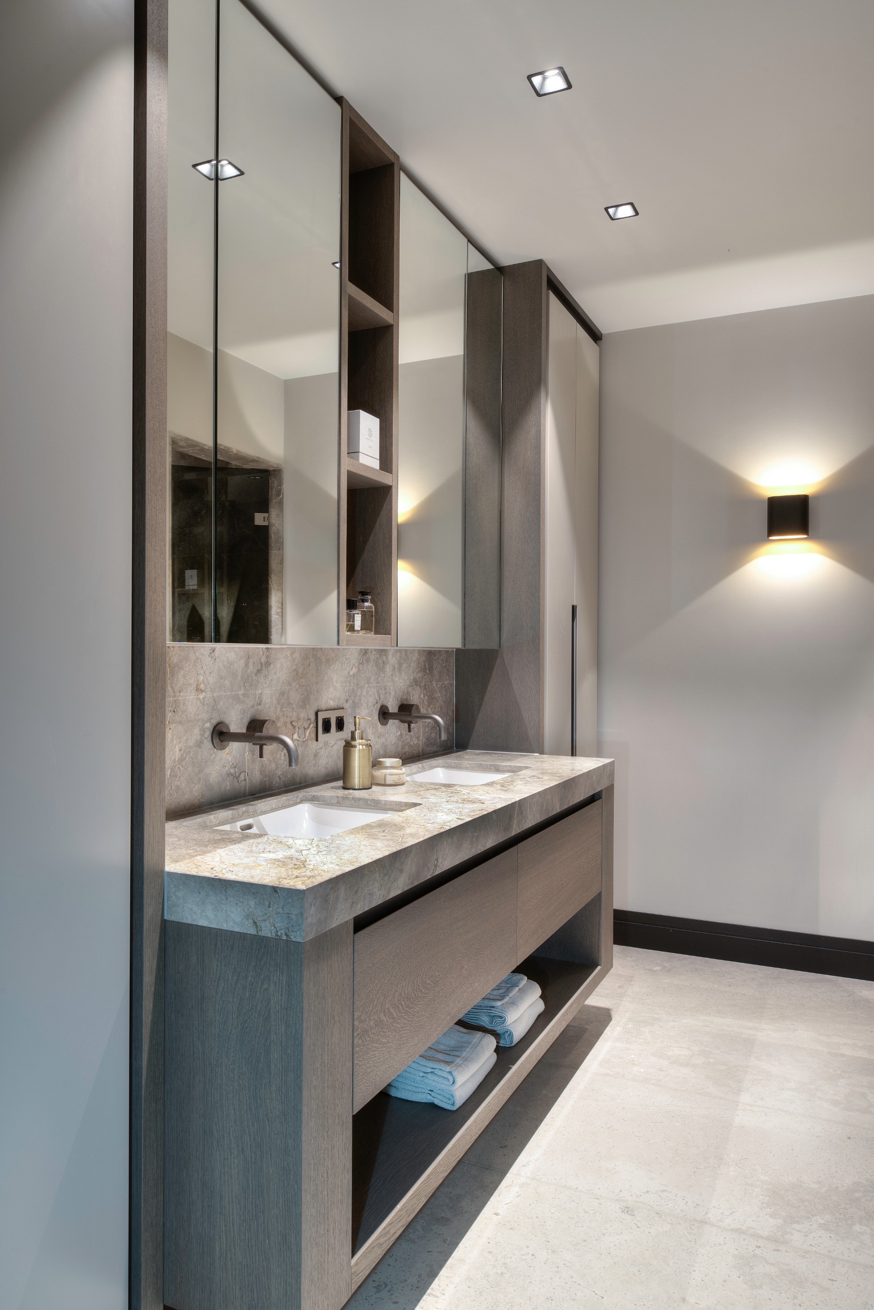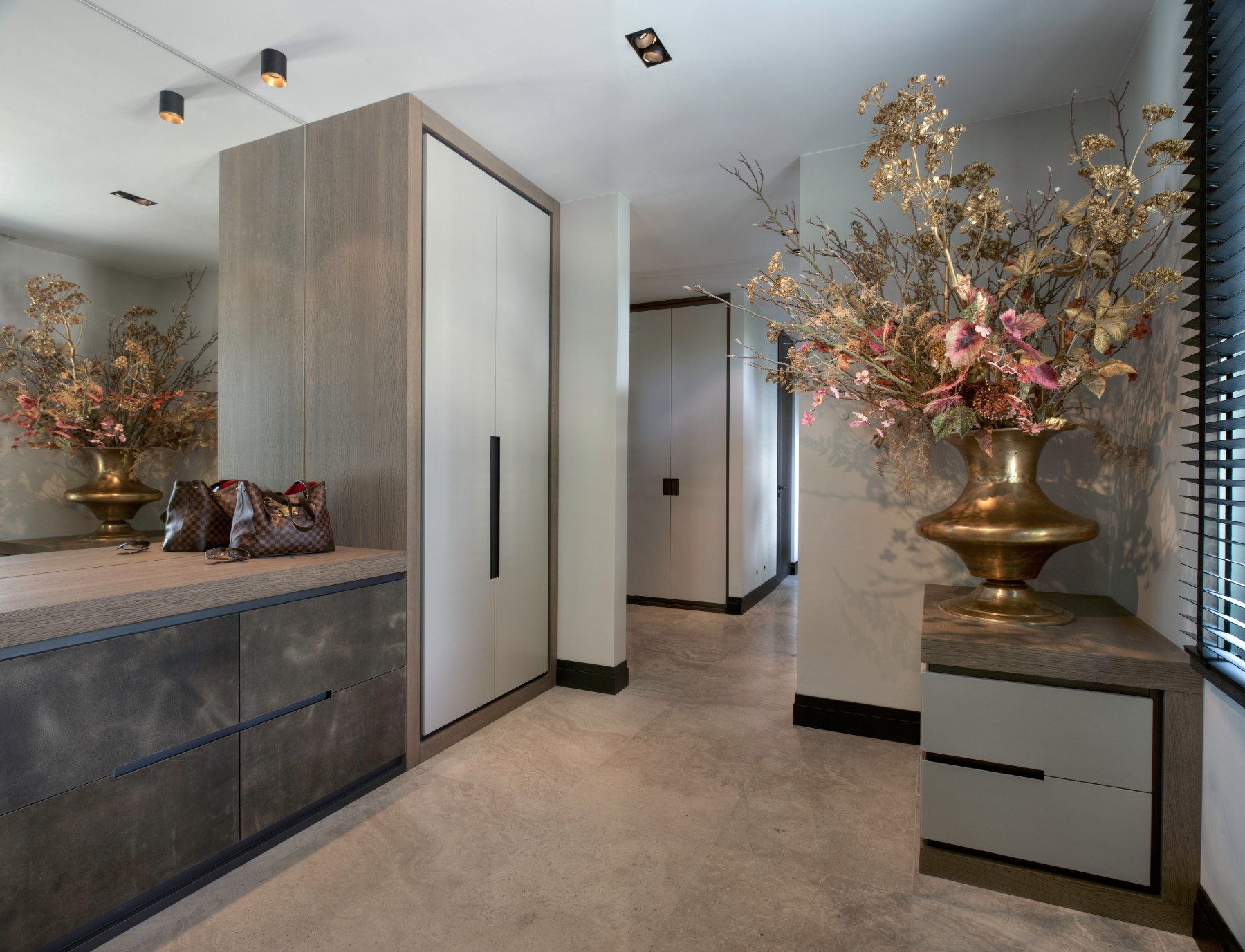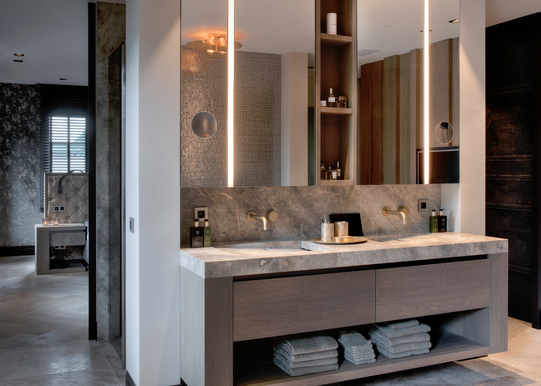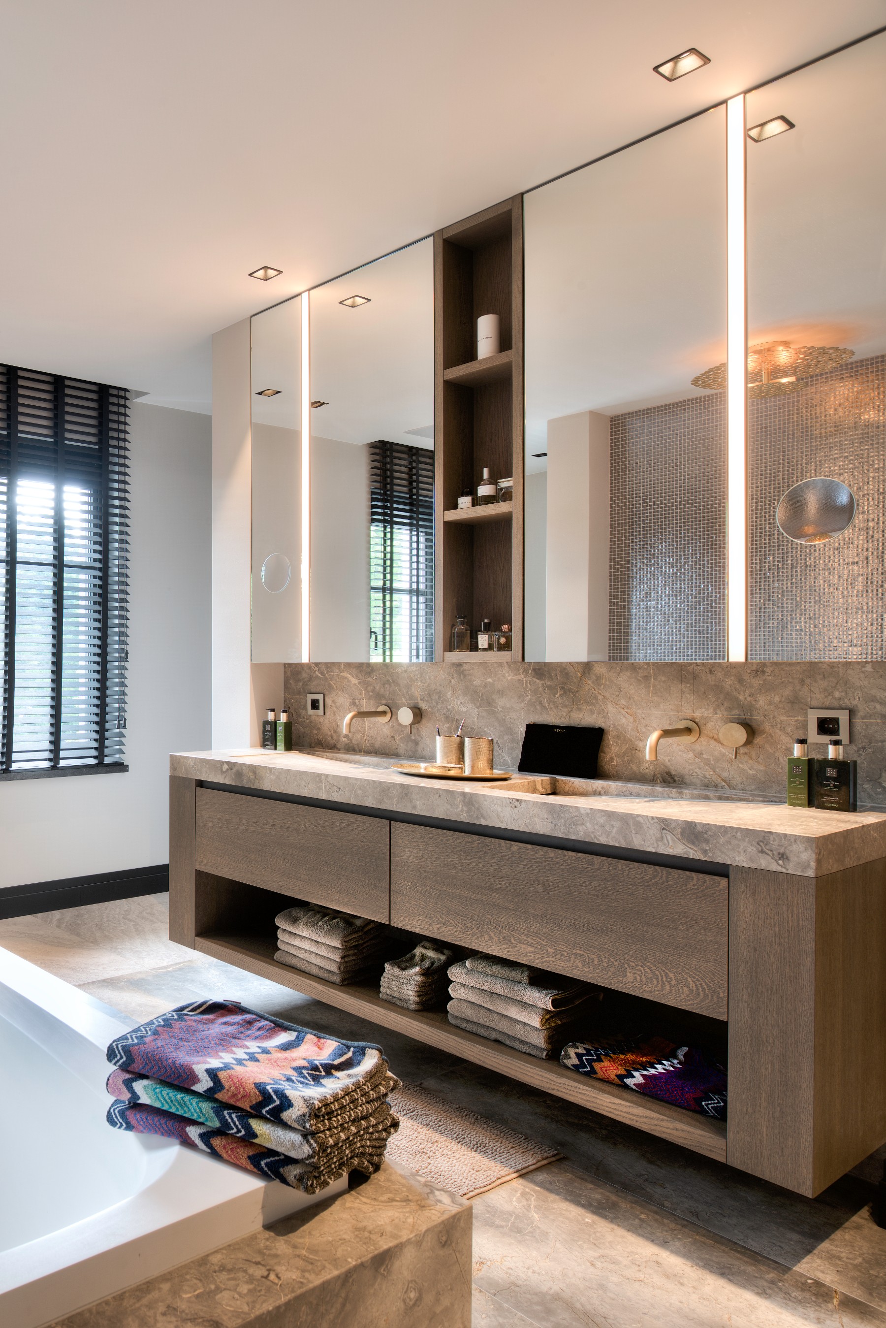 Een praktische oplossing kan ook zeker mooi zijn! Bij het ontwerp van deze villa is hier zeker rekening mee gehouden door Eric Kant! Denk aan de mooi verwerkte kaptafels aan de achterzijde van het bed in de master bedroom. Of de kaptafel verwerkt in het bureau bij de andere slaapkamer. Ook een airco kan soms lelijk in de weghangen, maar op deze manier is deze heel netjes weggewerkt waardoor je niet doorhebt dat er airco in de slaapkamer is!
