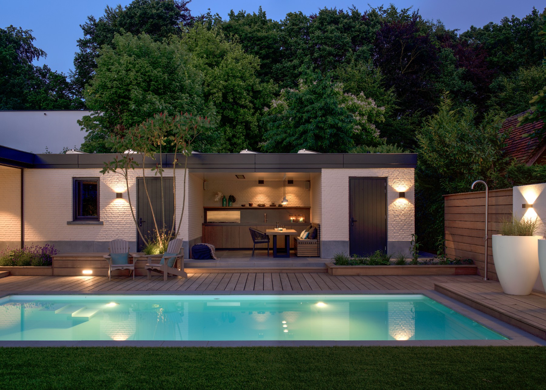 De foto's van deze prachtige woning spreken voor zich. Design en ontspanning komen op een bijzondere manier samen in deze luxe gezinswoning. Kijk snel verder voor meer inspiratie bij de foto's van de heerlijke buitenkeuken, luxe slaap- en badkamers en de prachtige relaxruimtes met bar, sauna en jacuzzi.