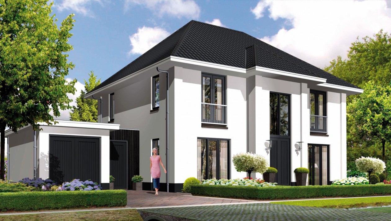 In Zwolle is deze moderne villa, type Lindepijlstaart gerealiseerd. Stijlvol, witgestukt, hoge ramen, franse balkons, een riante villa.