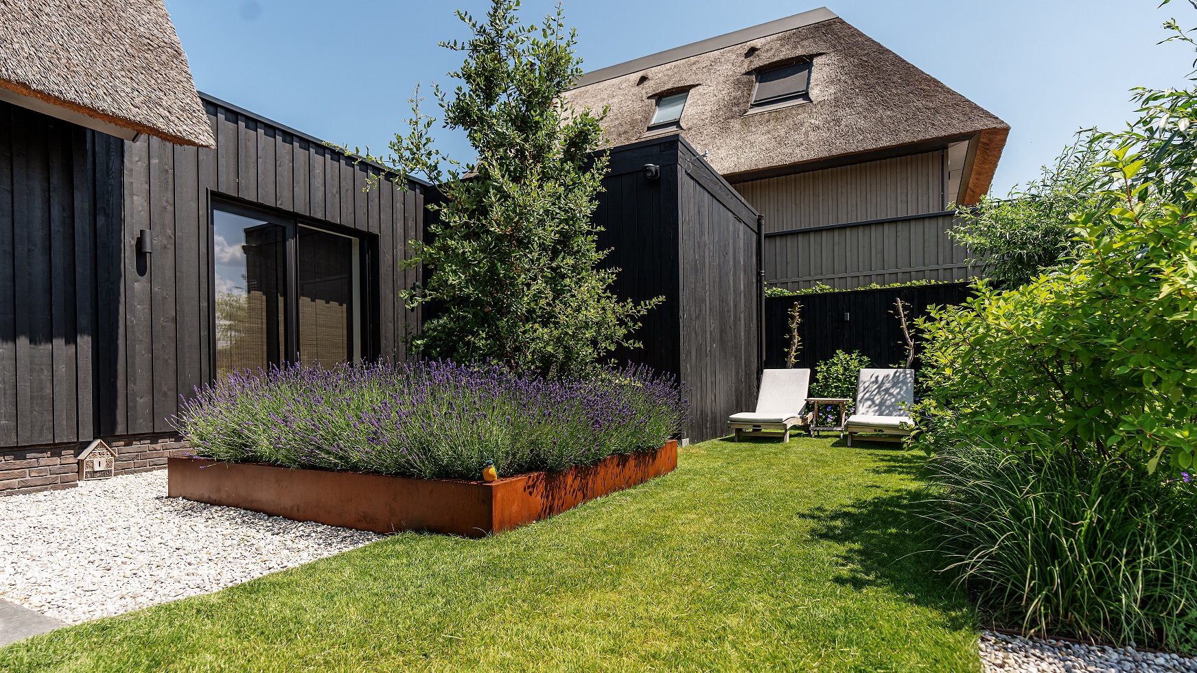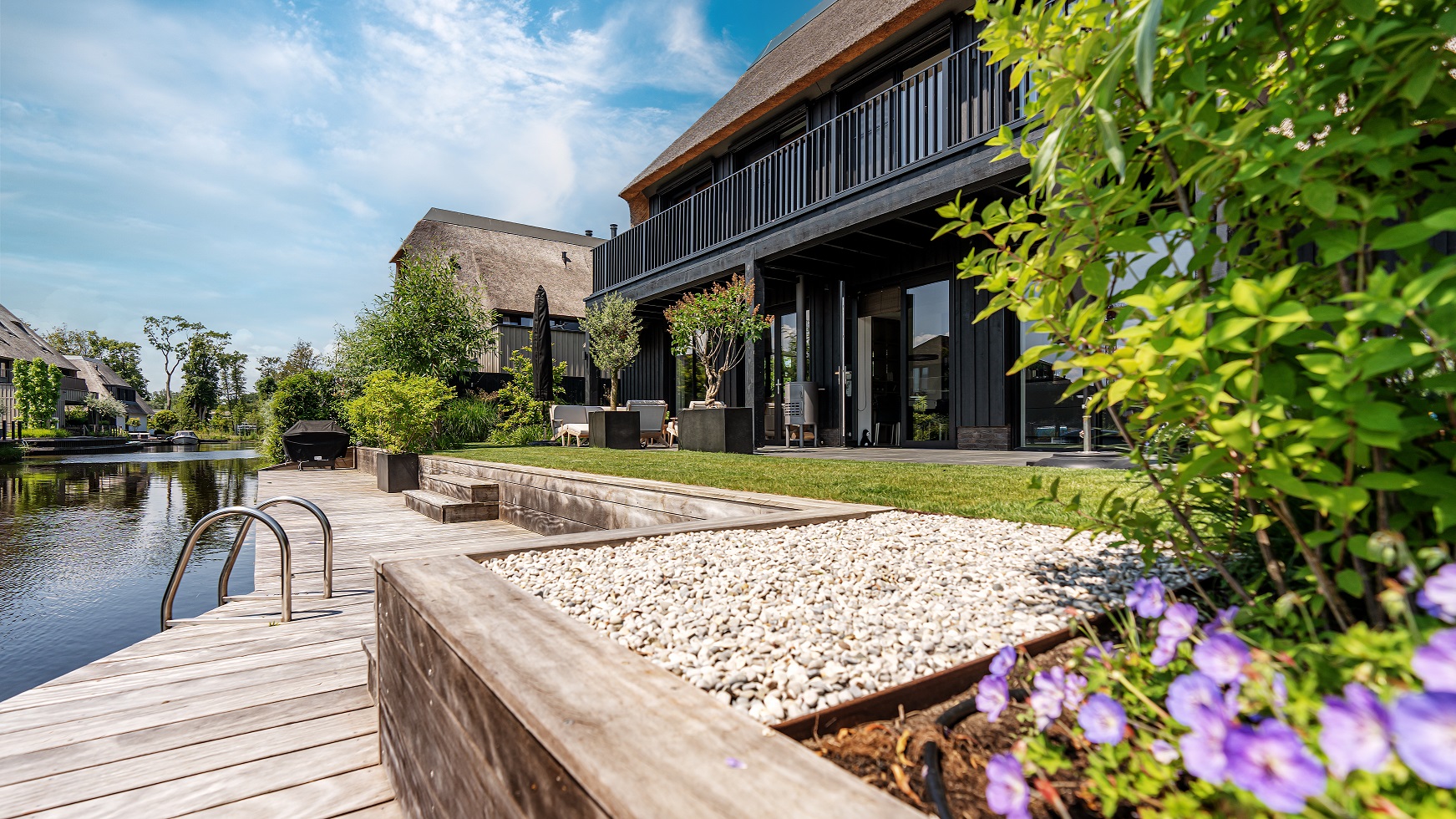 Een moderne villa gebouwd aan het water. Het rieten dak en de houten gevelbekleding zijn niet alleen een hoogwaardige afwerking, maar ook een duurzame keuze. De villa is hierdoor één met de omgeving en natuur. Aan de achterzijde heeft de villa grote ramen waardoor er veel licht in de villa valt, dit zorgt voor een extra ruimtelijk gevoel! De tuin aan de achterzijde beschikt over een terras en vlonder die mooi overloopt in het water. Heerlijk wonen in deze villa aan het water!