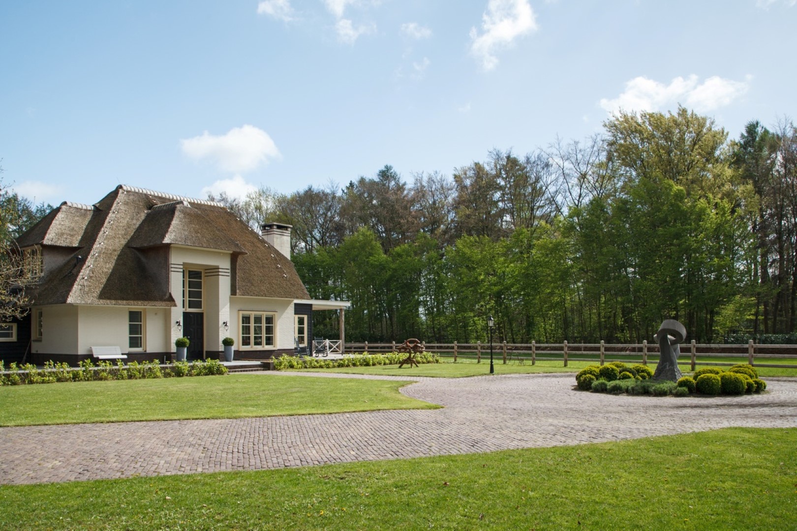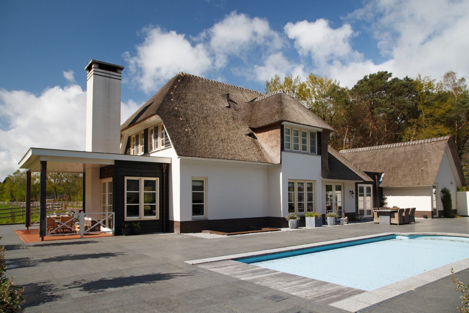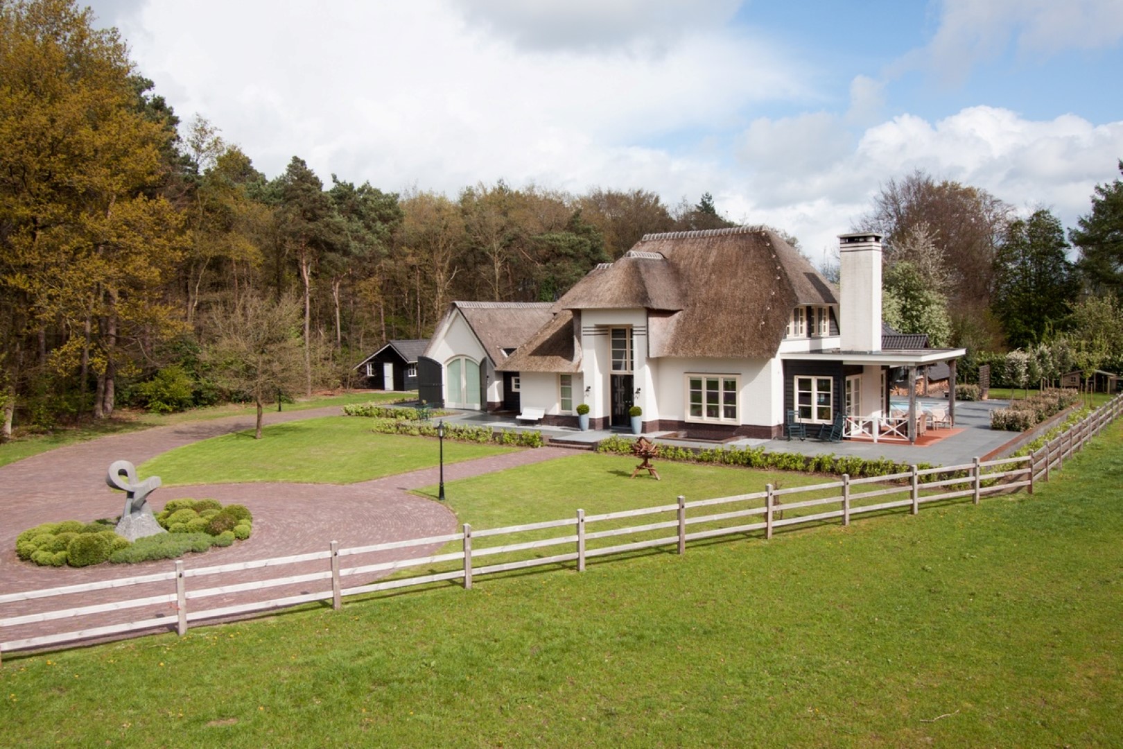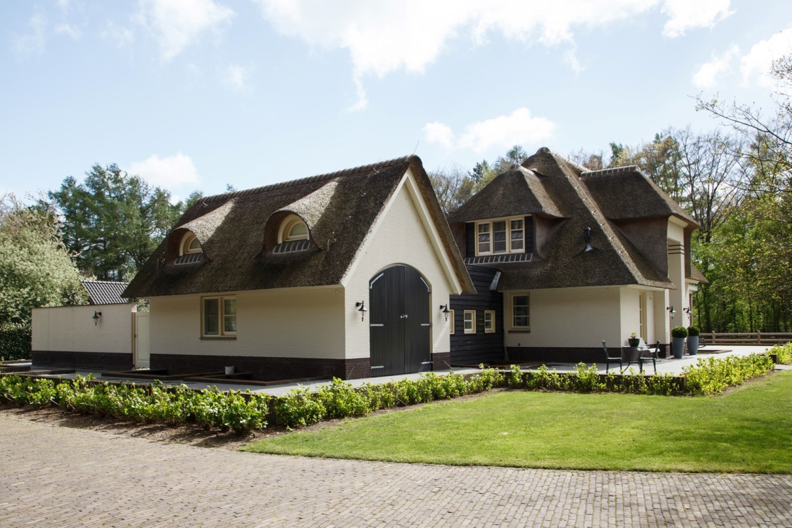 Een schitterend landhuis op een zeer royale kavel. Rietgedekt, witte gevels, potdekselwerk, alles klopt aan deze woning!