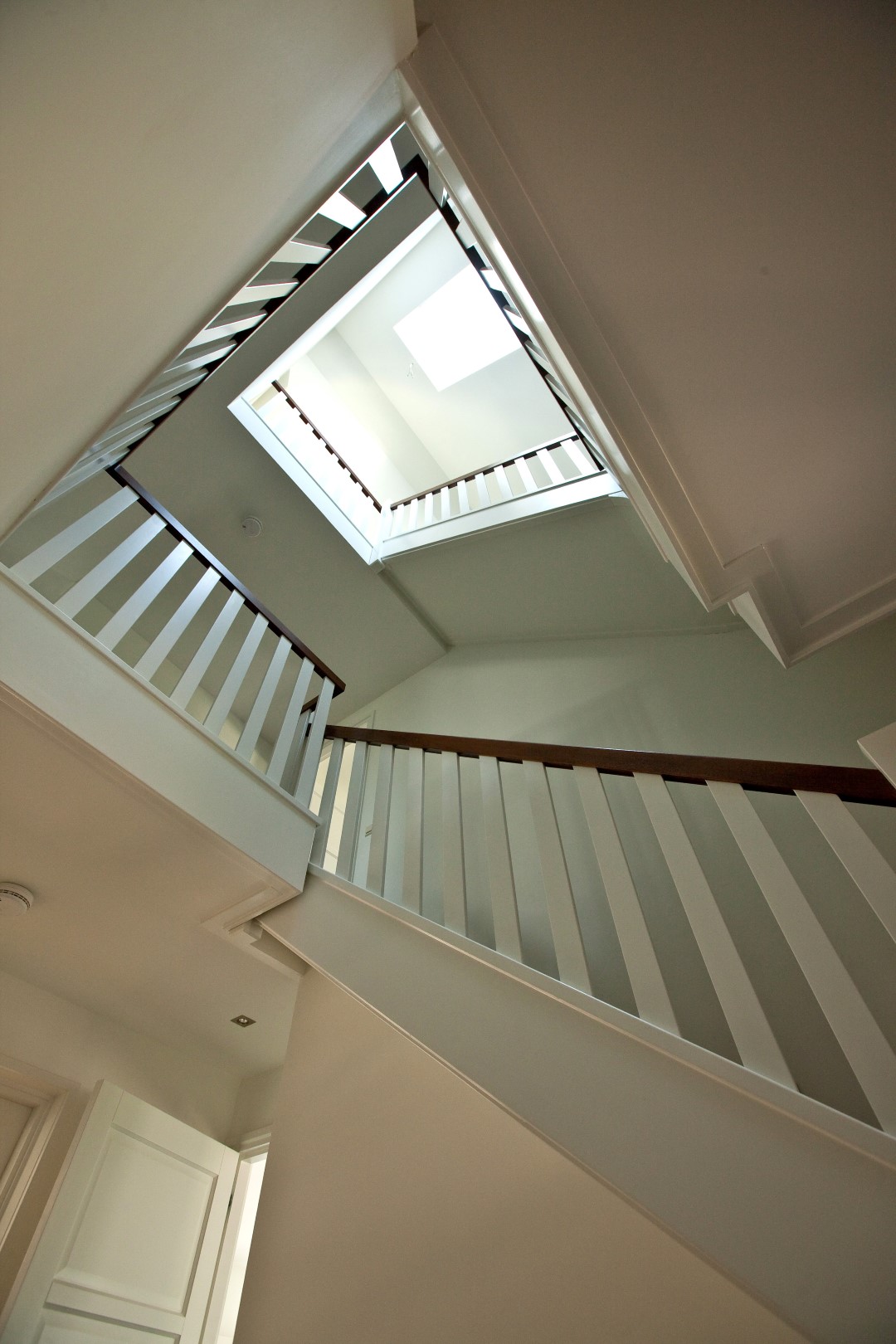 Op de begane grond vinden we een ruime living met daarnaast een tv-kamer. De keuken is straatgericht en heeft maar liefst twee paar openslaande deuren. Dit geldt overigens ook voor de living. Op de eerste verdieping zijn vier slaapkamers gesitueerd, waarbij de hoofdslaapkamer over een badkamer ensuite beschikt. De vide in de hal geeft een ruimtelijk gevoel in zowel de hal als de overloop.