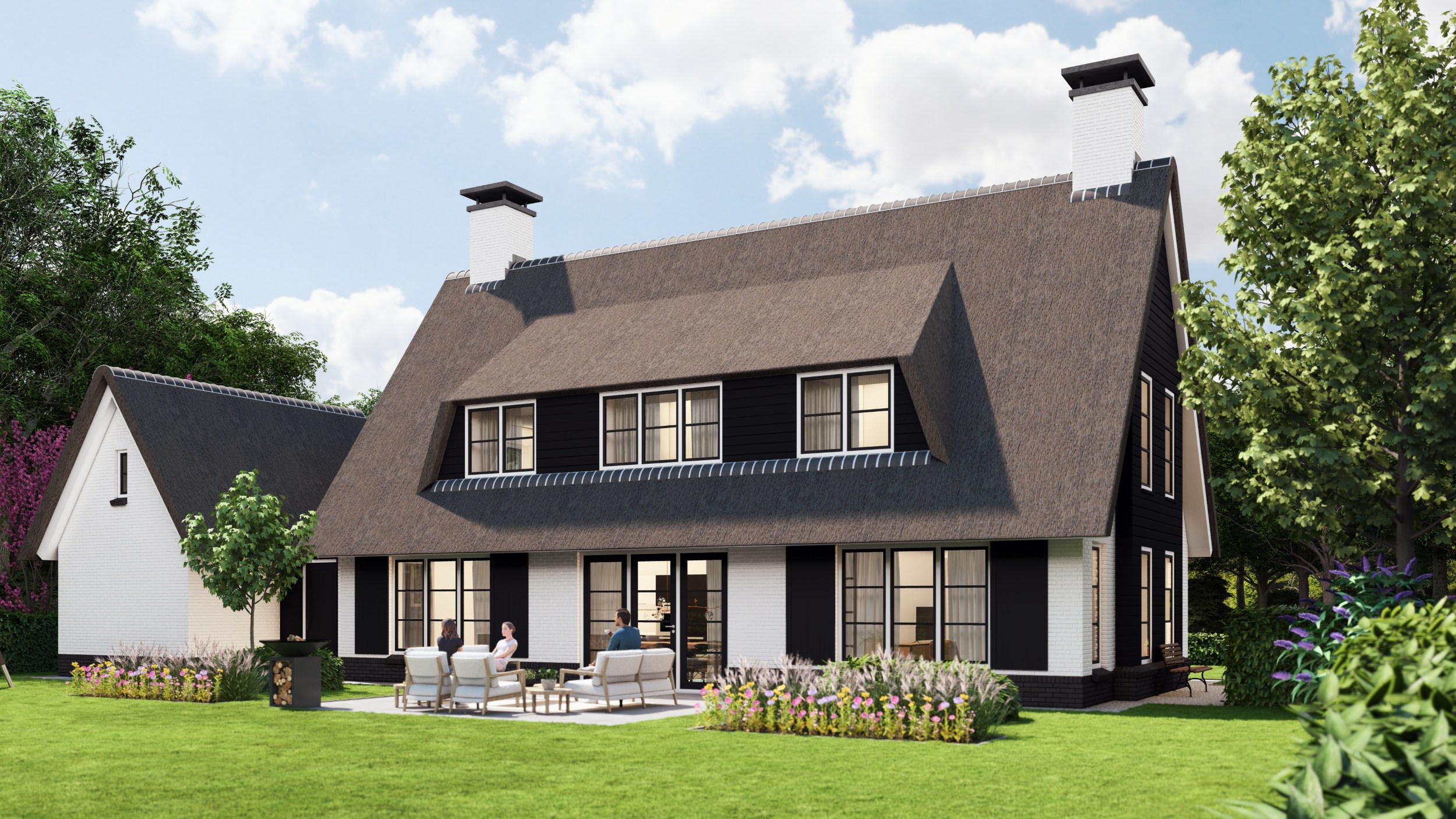Deze prachtige rietgedekte villa is symmetrisch ontworpen. Hierdoor staan alle ruimtes in contact met elkaar.