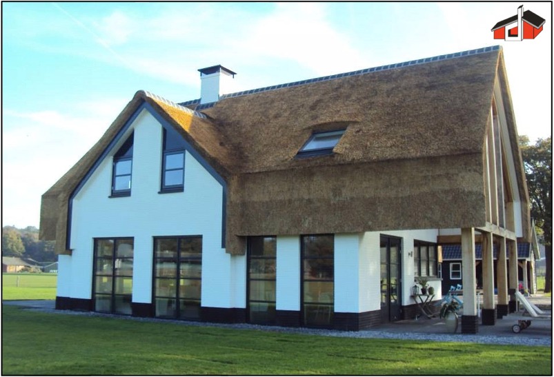 Een prachtige villa (schuurwoning) met rieten dakbedekking, type VO-13 van Bouw en Woonburo Dannenberg.Vraag de brochure aan op www.dannenbergbouw.nl