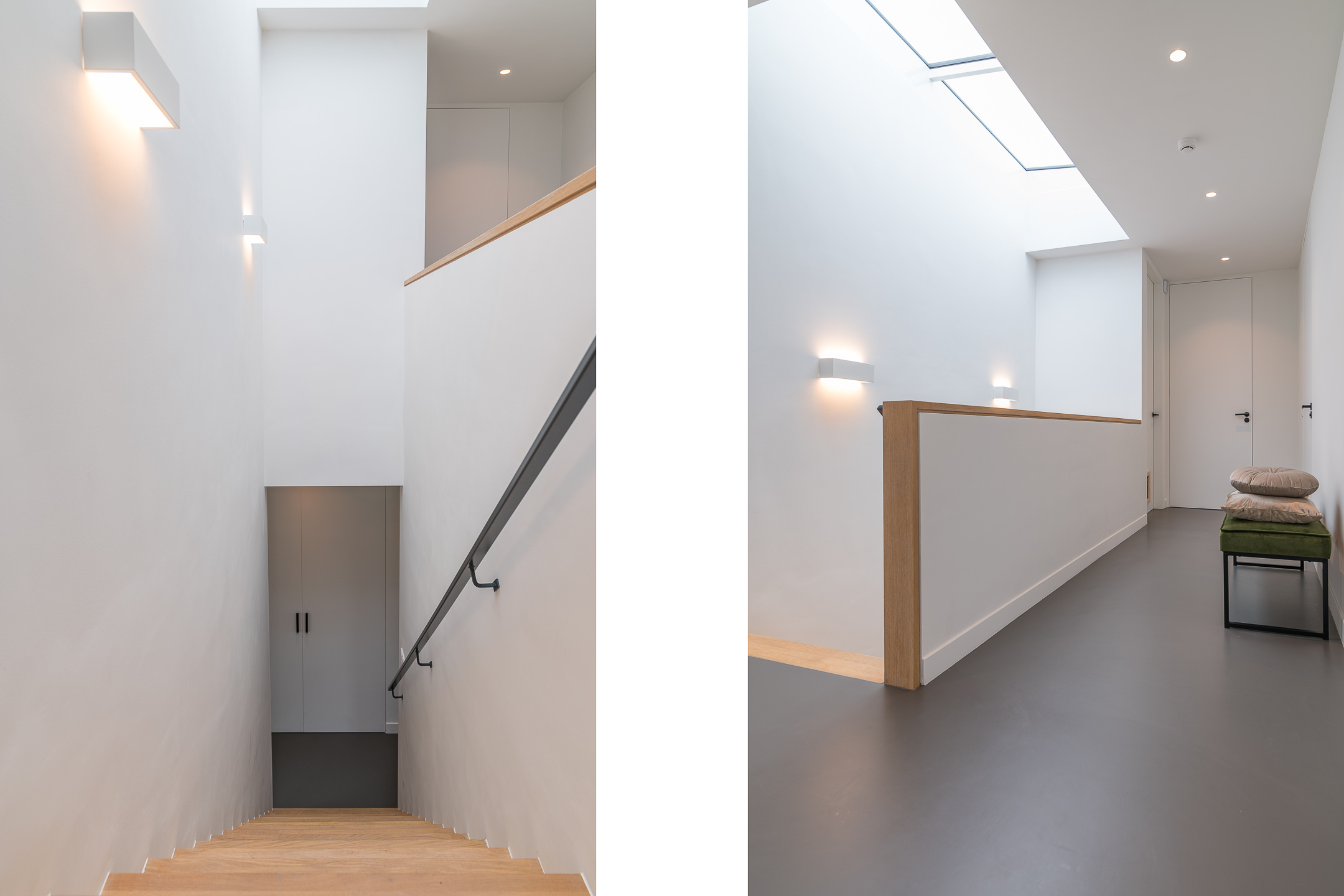De gevels zijn bekleed met steenstrips en ton-sur-ton gevoegd waardoor de verschijningsvorm strak is. De accenten in het ontwerp worden voorzien van lichtgrijs stucwerk. Alle kozijnen zijn uitgevoerd in aluminium.