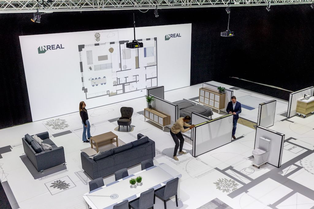 In een studio projecteert InReal met behulp van speciaal afgestemde beamers elk gewenst ontwerp op de projectievloer van 175 vierkante meter. Daarop kunnen bezoekers met verplaatsbare meubels en wanden de indeling van hun bouwplannen exact nabootsen. Het doel is om het bouwproces zo begrijpelijk en efficiënt mogelijk te maken. Oprichter van InReal, Frank Boudewijns, kreeg het idee tijdens zijn carrière in de vastgoedmarkt: “Ik heb gezien dat veel mensen bouwtekeningen visualiseren of ruimtes inschatten lastig vinden. Hierdoor moeten zij in een later stadium bijvoorbeeld een muur of stopcontact verplaatsen. Omdat mensen in onze studio echt door hun bouwtekening lopen en zelf muren fysiek verplaatsen, ervaren zij direct het effect van de verschillende opties. De betere keuzes die zij hierdoor maken besparen hen tijd, verrassingen én een prijzige aanpassing achteraf.”