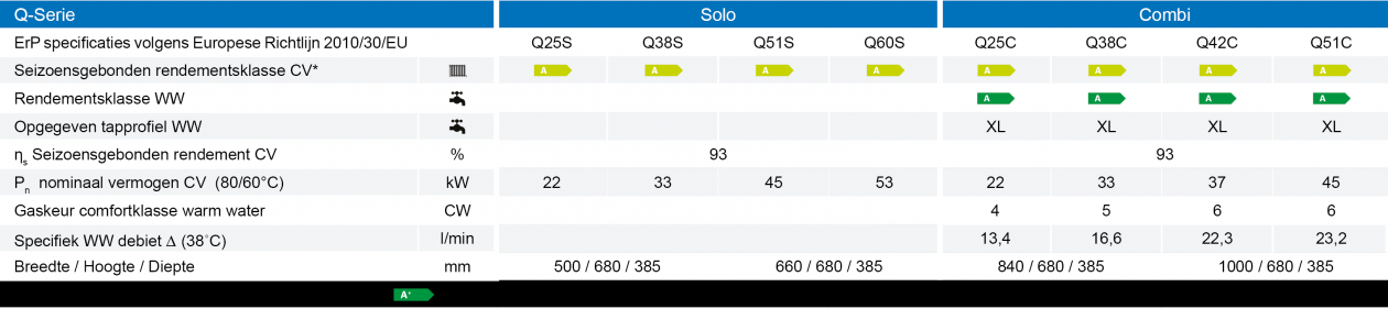 * Voorzien van A-label pomp: zeer zuinig, geruisloos en past zich aan de warmtebehoefte aan