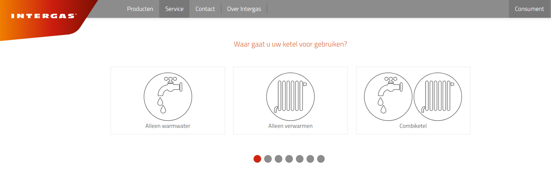 Intergas heeft een groot assortiment CV-ketels. Via de KetelKiezer van Intergas krijgt u in 6 eenvoudige stappen een goede indicatie van de CV-ketel die het best past in uw situatie. De Ketelkiezer kunt u bezoeken via de website: http://www.intergas-verwarming.nl/consument/ketelkiezer