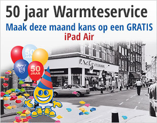 Dit jaar is het 50 jaar geleden dat de eerste Warmteservice vestiging in Amsterdam door Theo de Bruin sr. werd geopend. Om het 50-jarig bestaan te vieren, zijn er het hele jaar door speciale jubileumacties. In de maand juli maakt iedereen die € 50,- (incl. BTW) of meer besteedt bij Warmteservice kans op een GRATIS iPad Air. Kijk regelmatig op www.warmteservice.nl/jubileumacties en mis geen enkele actie.