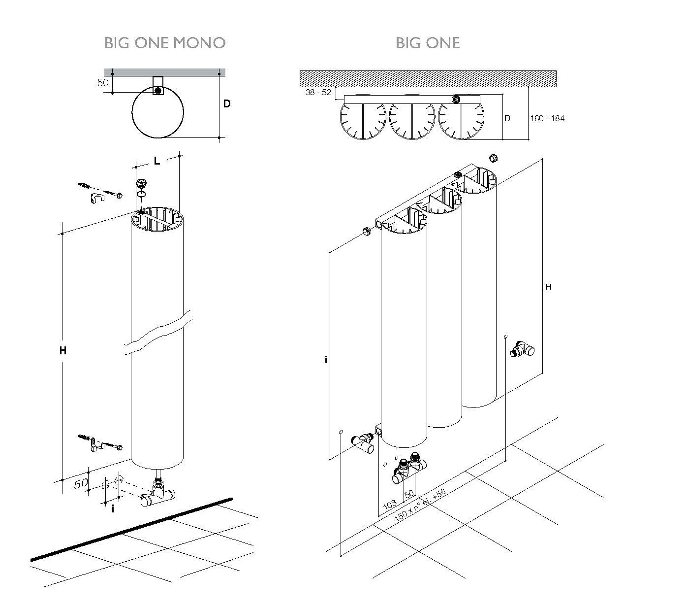 Big One is een aluminium radiator, van 4 tot 8 elementen in de hoogte van 600mm of van 1 tot 5 elementen met een hoogte van 1800mm.