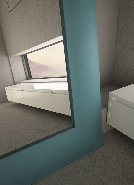 De Mirror kan op de grond worden geplaatst en is verkrijgbaar in de afwerkingen, geborsteld, sat, mat en in RAL kleuren.