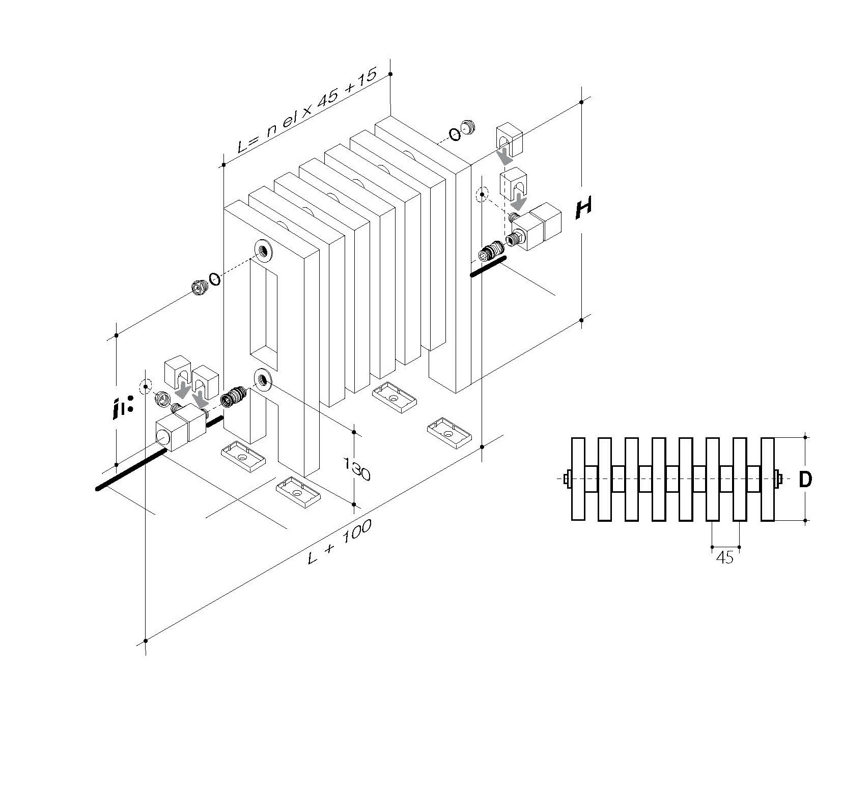 Aluminium radiatorreeks: van 12 tot 31 elementen in hoogte van 400mm.