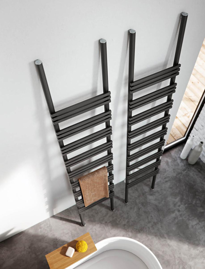 De traditionele ladder van vroeger keert terug als een bijzondere designradiator aan de muur. In deze verwarming komen klassieke en moderne elementen samen. Een combinatie van prachtig design, heerlijke warmte en superieure kwaliteit. Ontworpen door industrieel designer Andrea Crosetta.