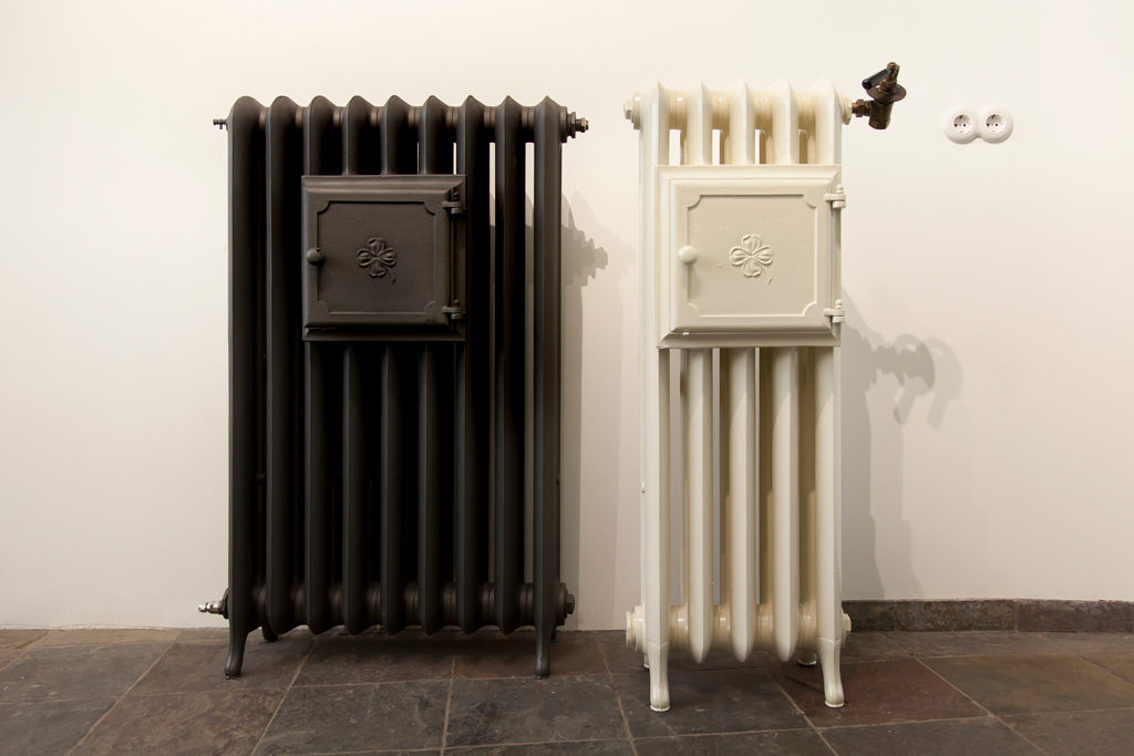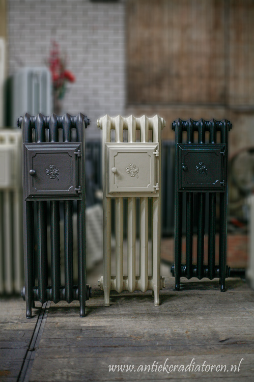 De nostalgische bakelieten hendel maakt de radiator echt af.