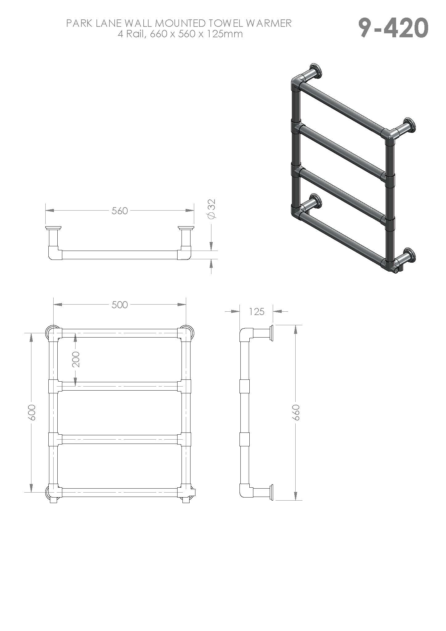 Handdoekradiator opgebouwd uit vierkante collectoren en vierkante horizontale buizen