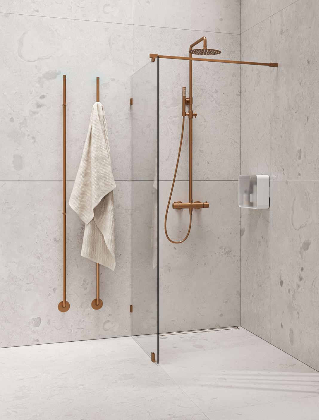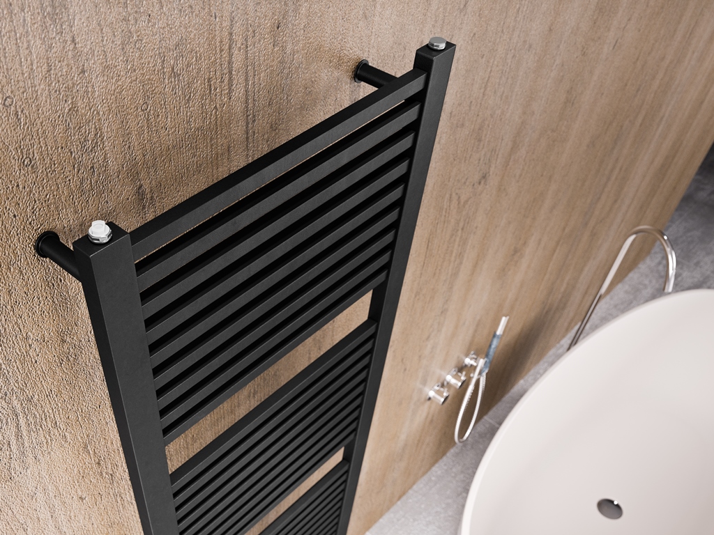 De DECO – LIGHT bevat kenmerkende stijlelementen zoals de strakke buizen en de tussenstukken met openingen voor het drogen en verwarmen van handdoeken.