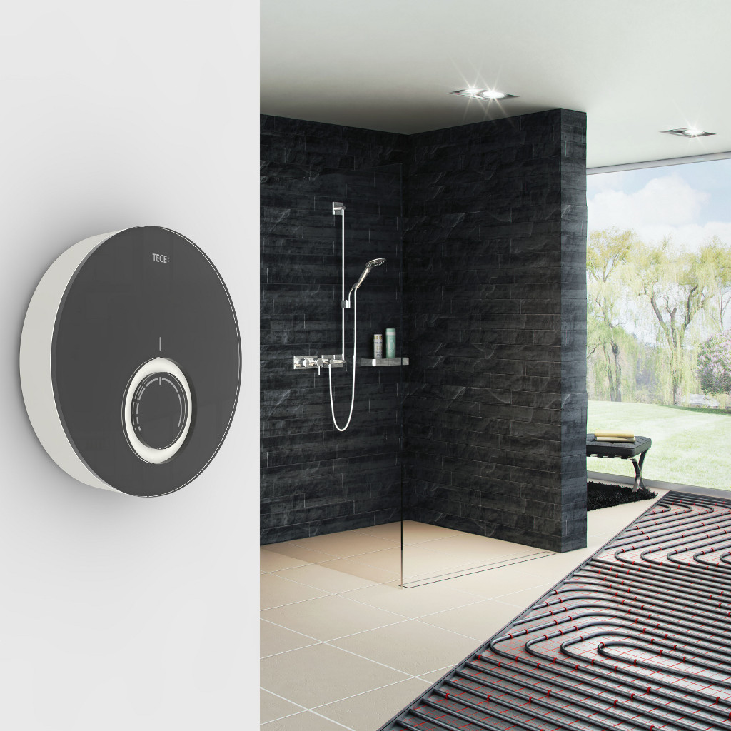 Op het gebied van de installatietechniek verrast TECE opnieuw met een designproduct van glas, namelijk met een wandthermostaat speciaal voor de vloerverwarmingssystemen TECEfloor. Het opvallende en trendy ontwerp is gemaakt door het succesvolle bureau: NOA Intelligent Design te Aken. Dankzij de diameter van 105 mm zijn deze wandthermostaten een echt design element, dat esthetisch in elke ruimte kan worden ingepast. Daarbij is het glazen design prachtig afgestemd op andere producten van TECE. Zoals de bedieningsplaten TECEloop, de spoeltechniek TECElux en de douchegoten TECEdrainline, die zijn voorzien van glazen afdekroosters in het wit of zwart.