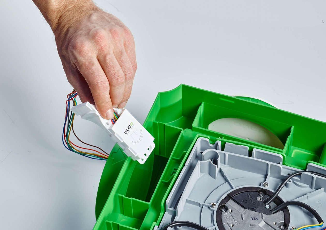 Wilt u echter nog een stap verder gaan? Dat kan met de nieuwe DucoBox Silent Connect. Anders dan bij de DucoBox Silent kan deze ontwikkeling alle componenten naast draadloze communicatie (RF) nu ook via bekabelde (Wired) verbindingen met elkaar laten communiceren. Geen overbodige luxe dus in situaties waar draadloze communicatie niet of moeilijk toepasbaar is. Bijkomende sterke troef is een snelle en eenvoudige connectie met de gloednieuwe Duco Ventilation App die u in staat stelt om alle gewenste informatie uit een gemonteerde ventilatiebox af te lezen.