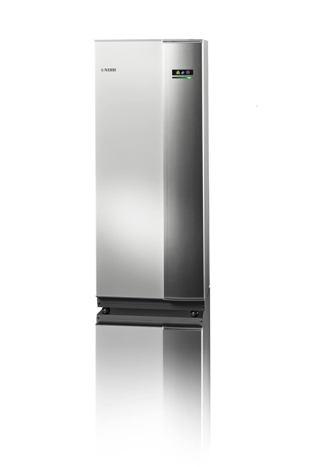 De behuizing van beide warmtepomptypes omvat een warmtepomp, een elektrisch element, circulatiepompen en een regeling met display. De 30 cm hogere NIBE F1255 is bovendien voorzien van een geïntegreerde 180 liter RVS-boiler met een milieuvriendelijke isolatiemantel.