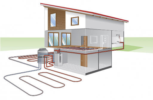Bij een horizontale bodemcollector worden kunststofslangen aangelegd in de grond op ongeveer anderhalve meter diepte. Dit gesloten systeem is bijna overal toepasbaar en ook zijn de boringen minder duur dan bij een verticale bodemcollector. Het nadeel van een horizontaal systeem is dat men wel over voldoende grondoppervlakte moet beschikken en dat op die oppervlakte dan geen beplanting aangebracht mag worden. Uitgezonderd hiervan zijn gras en struiken met een horizontale wortelgroei. Ten slotte kan de brontemperatuur variëren: doordat de buizen redelijk dicht onder het aardoppervlak aangelegd worden, hebben de weersomstandigheden invloed op de brontemperatuur. In de winter is de grond kouder en dan kan dus de brontemperatuur lager liggen. Heb je een verticaal systeem, met boorgaten met een diepte van 40 tot wel 160 meter, dan heb je hier geen last van.