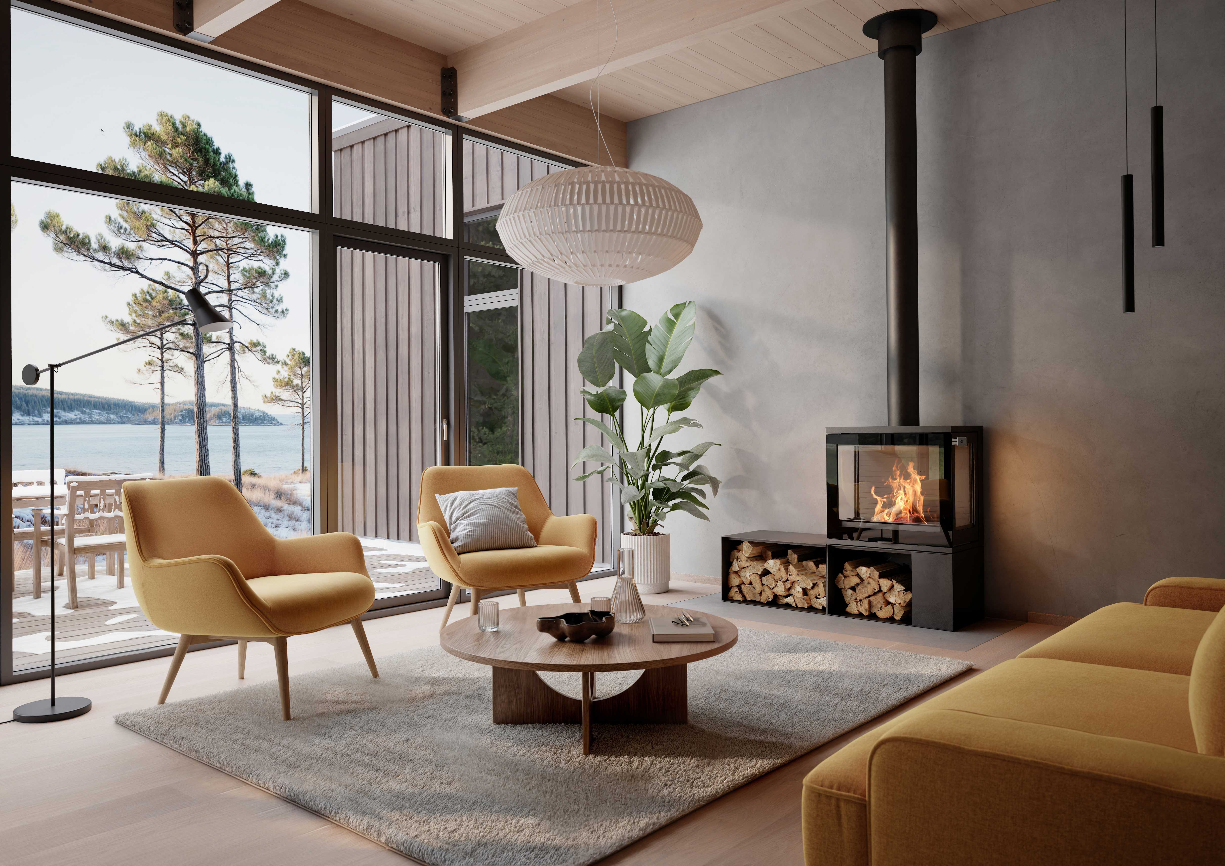 Een houtkachel met een elegant uiterlijk en een buitengewoon grote verbrandingskamer