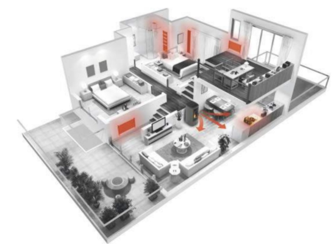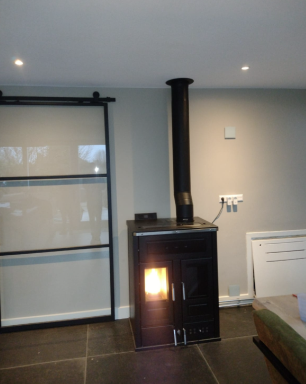 Dit prachtige toestel kan uw gehele woning verwarmen door het aan te sluiten op de centrale verwarming (cv). U heeft de flexibiliteit om hout, pellets, of beide brandstoffen tegelijkertijd te gebruiken.