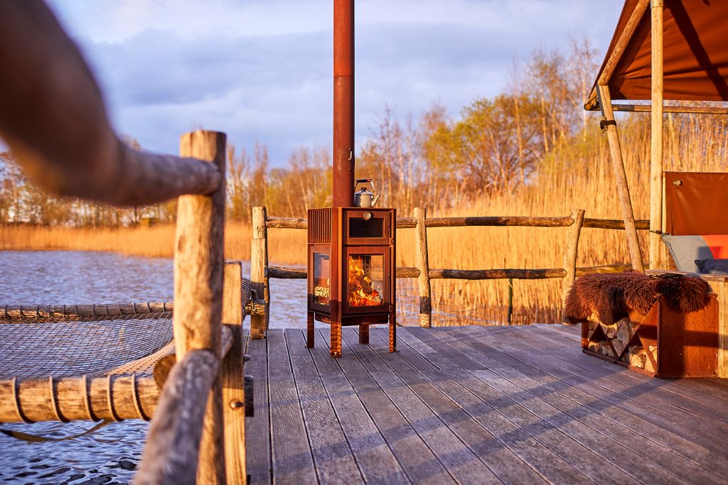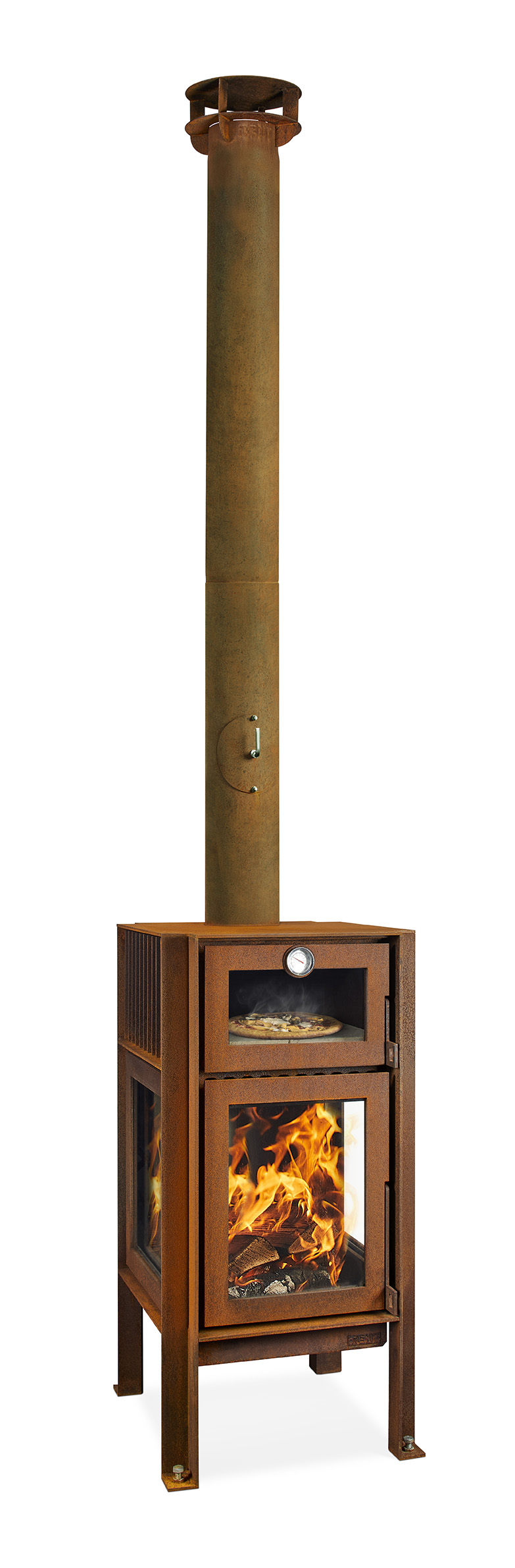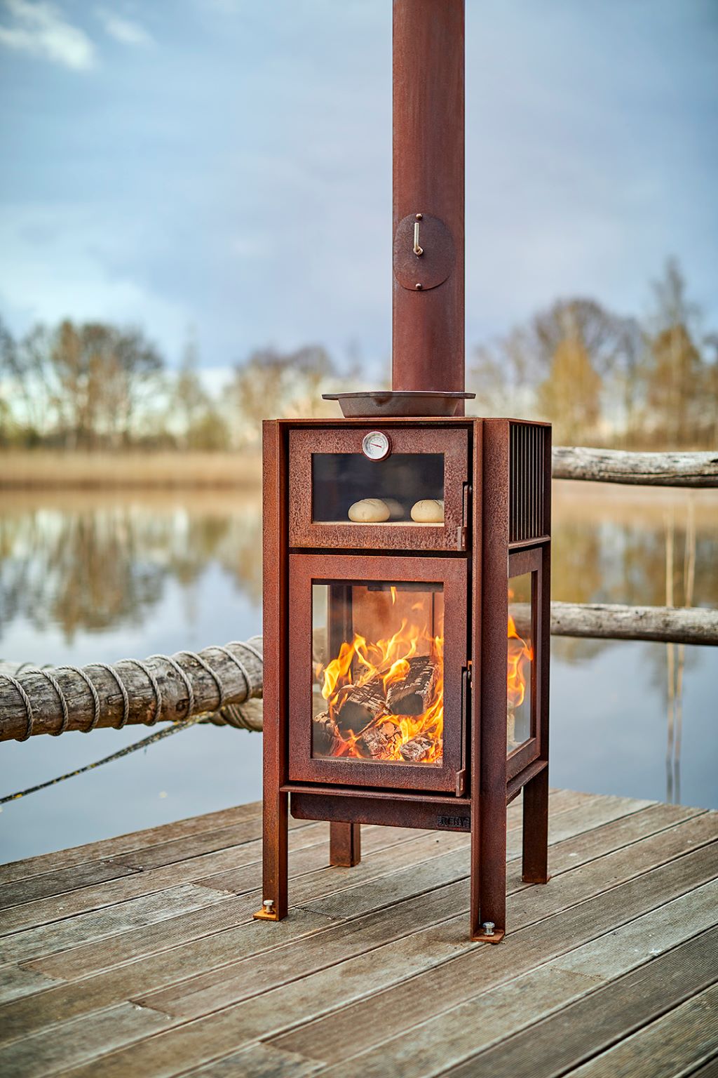 Veelzijdige houtkachel met een industriële uitstraling. Deze is perfect voor buitengebruik.